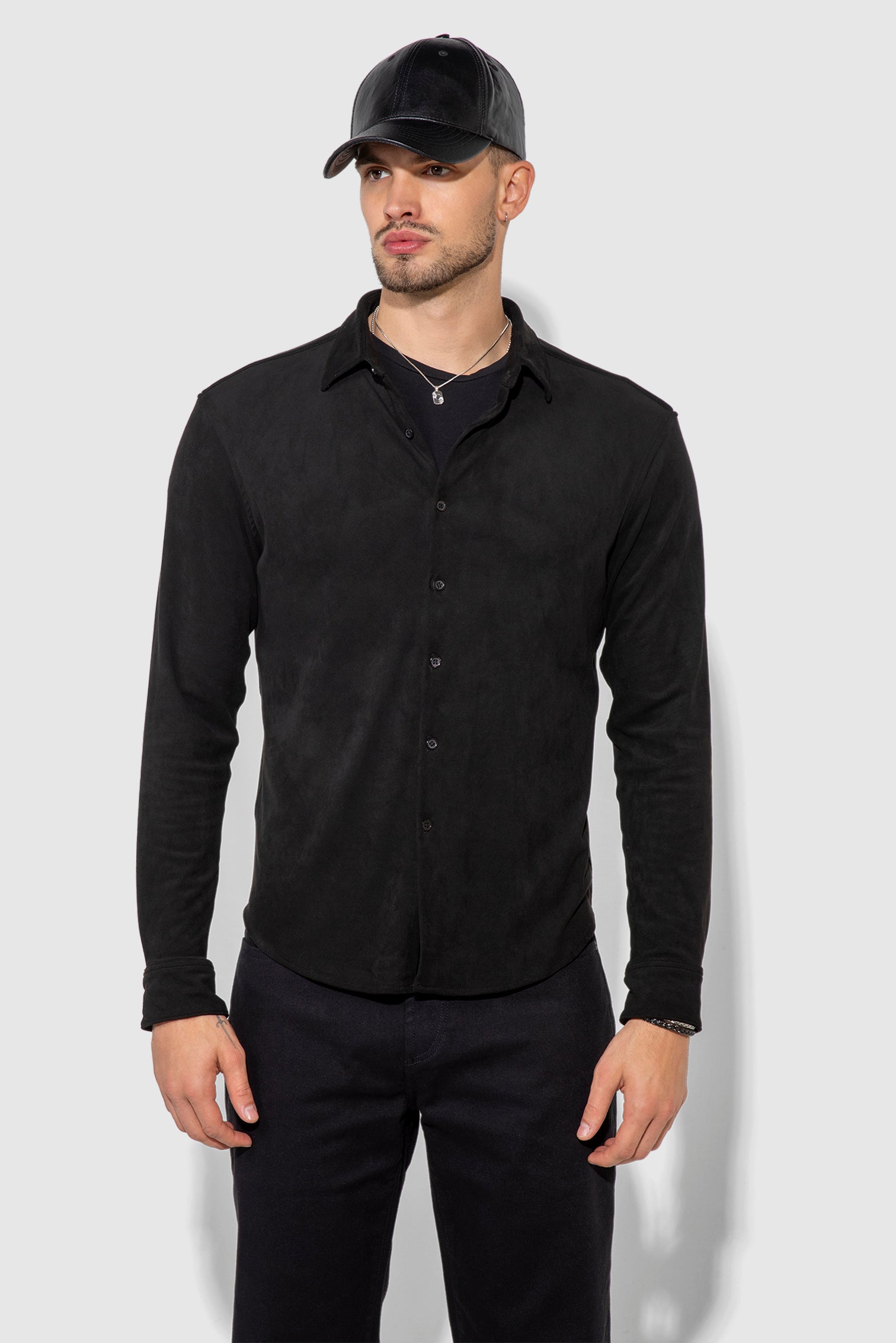Cooper Noir refines the long sleeve essential in a matte black suede that feels soft the second it hits your skin. The fabric drapes clean without losing shape and the button front keeps the line sharp whether worn open or fully closed. Lightweight structure gives it ease and presence at the same time. A modern staple that brings quiet confidence to any look.