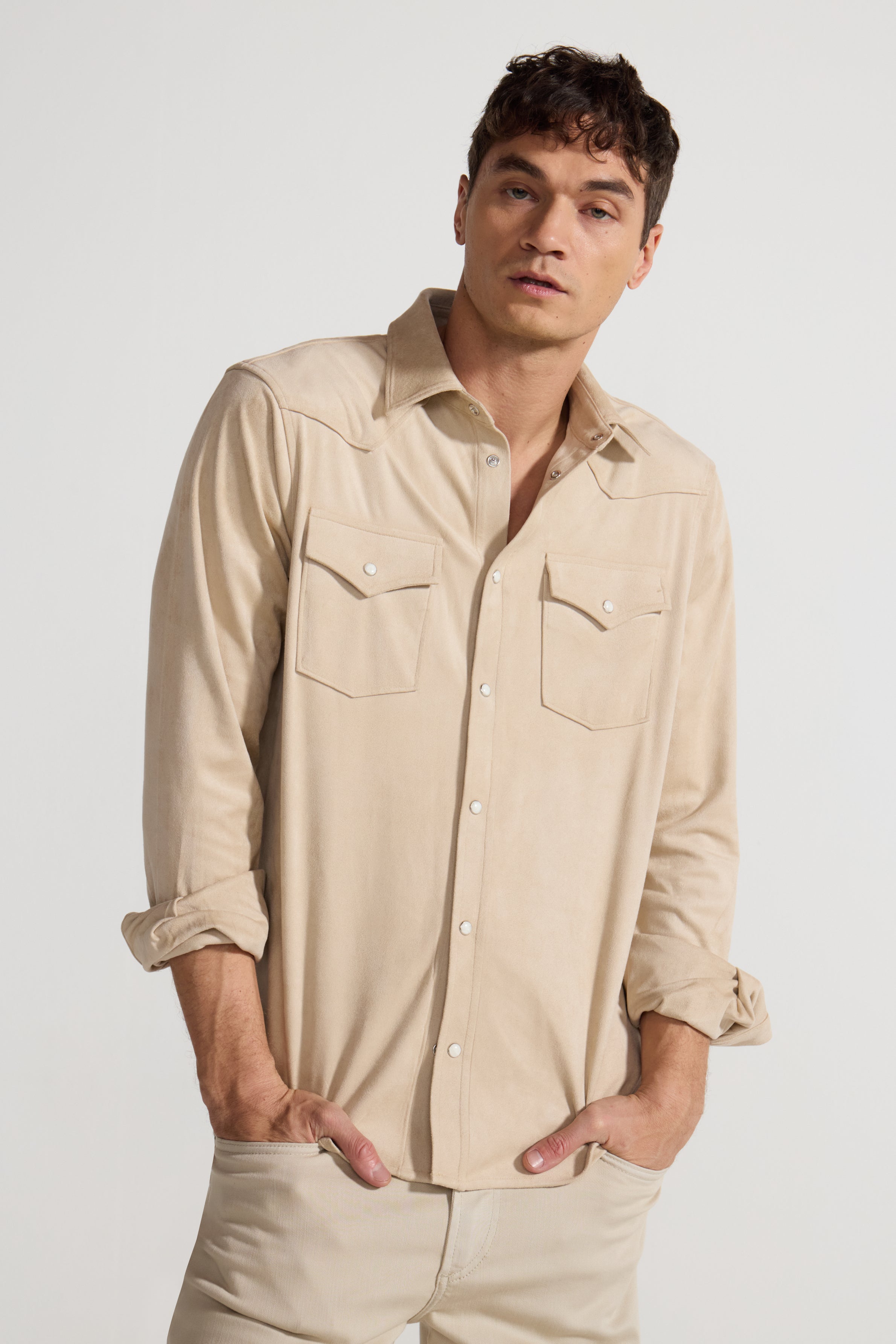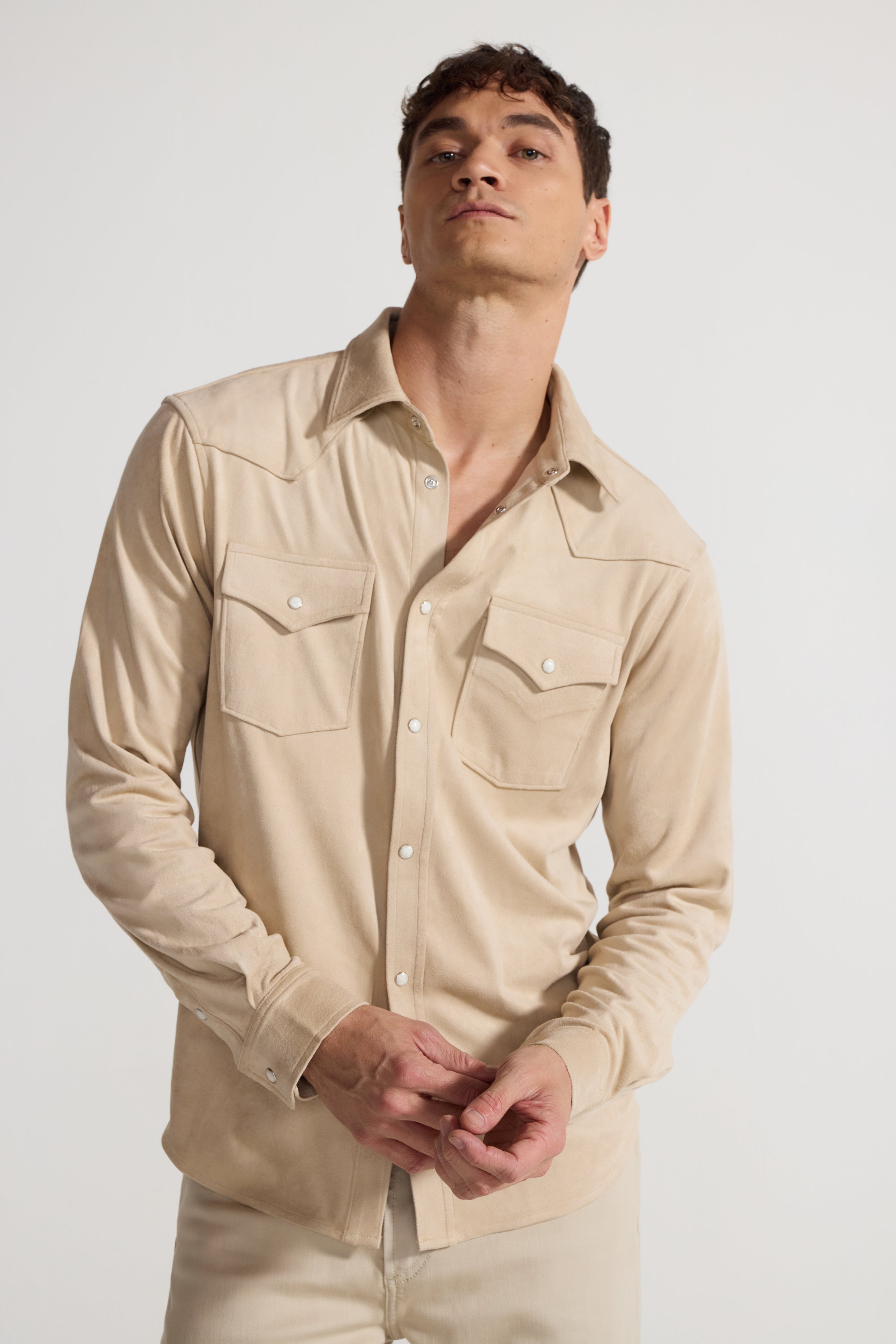 Khaki Butter Suede Western Shirt