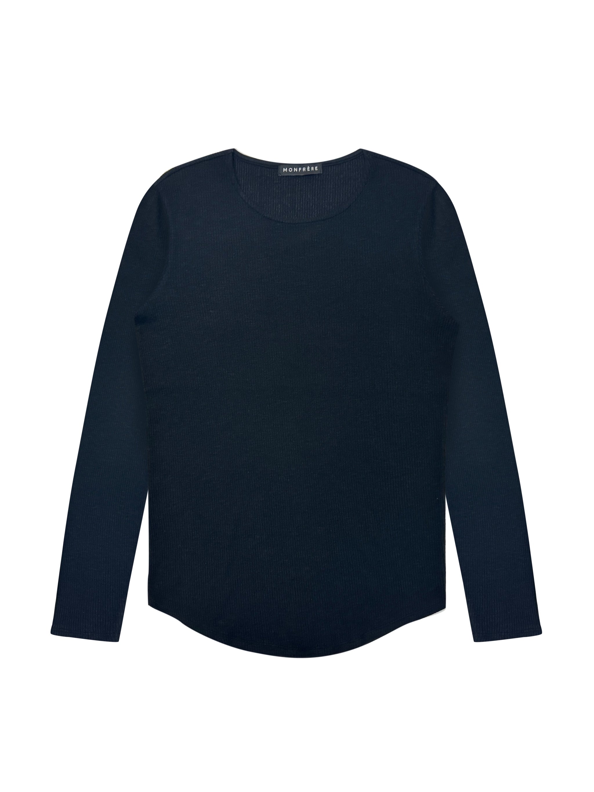 Your everyday essential, sharpened. Dann Long Ribbed in Noir is cut from soft ribbed jersey that holds its line while moving easily. A clean crew neck, fitted arms, and a curved hem give the tee a refined finish that works solo or under a jacket.
