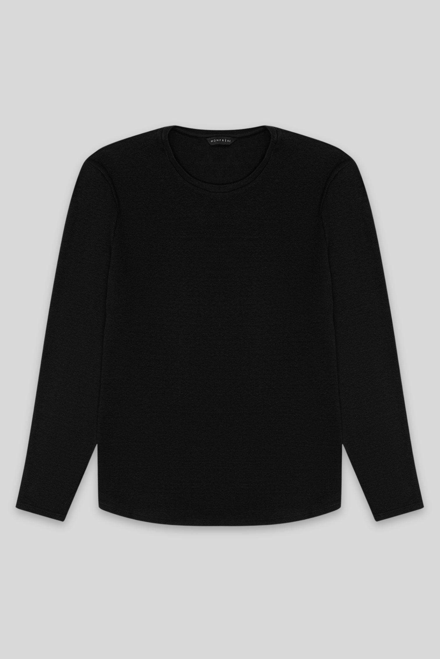 Your everyday essential, sharpened. Dann Long Ribbed in Noir is cut from soft ribbed jersey that holds its line while moving easily. A clean crew neck, fitted arms, and a curved hem give the tee a refined finish that works solo or under a jacket.