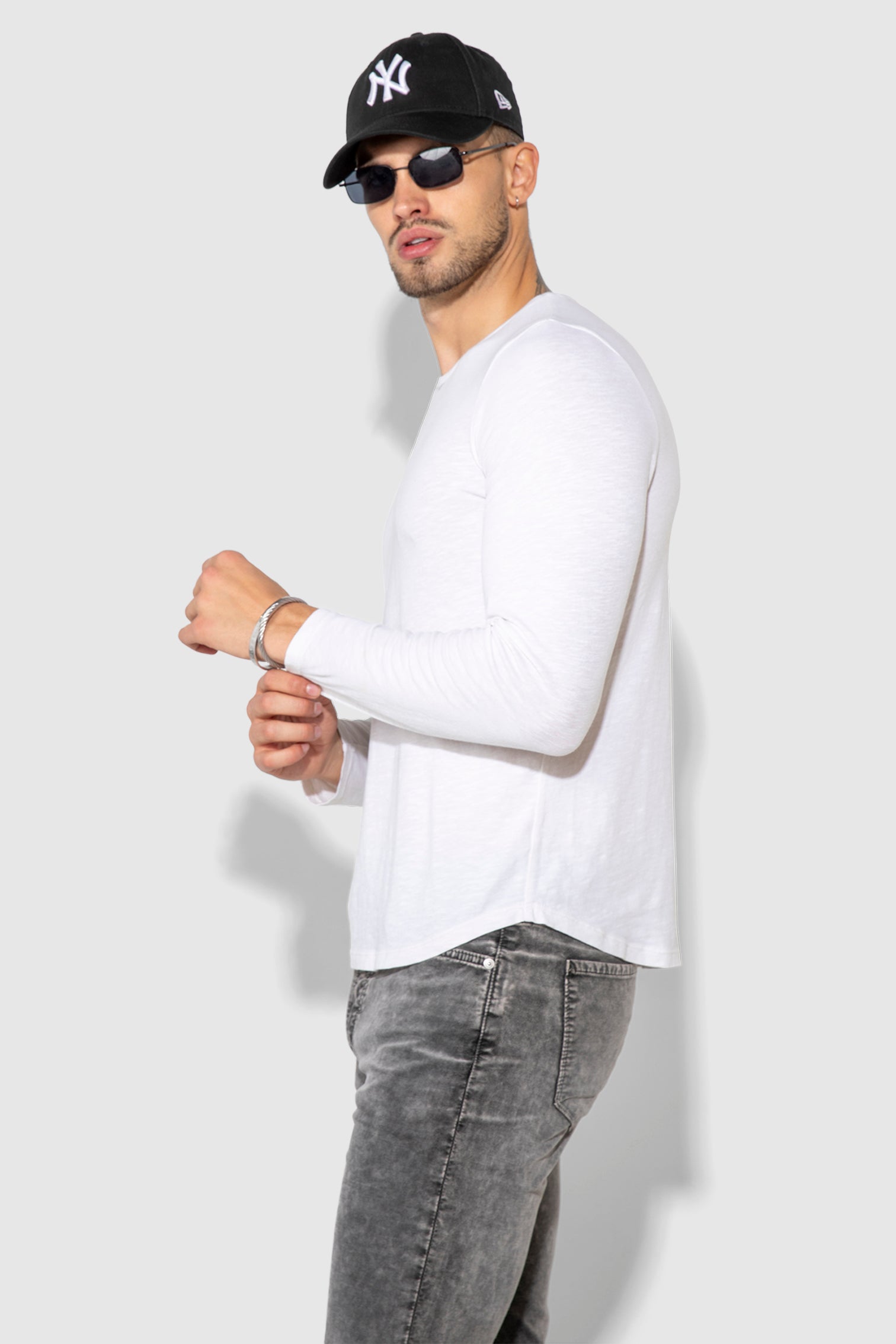 Dann Long Sleeve Vintage Blanc refines the everyday layer in a soft off white tone that feels natural and adaptable. Lightweight jersey with comfortable stretch shapes the body cleanly through the arms and chest without restriction. A simple crew neckline and curved hem give it a polished finish that works across settings. A foundational piece designed to support whatever you build around it.