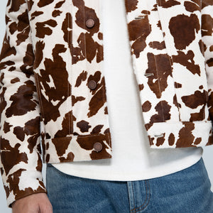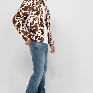 The Dean in premium Cowhide brings real presence to the trucker frame. The hide carries weight and character, reading bold without noise, and every panel shows natural variation that makes each jacket one of one. Clean seaming keeps the line controlled while the interior stays smooth, so it wears with authority and moves without fight.